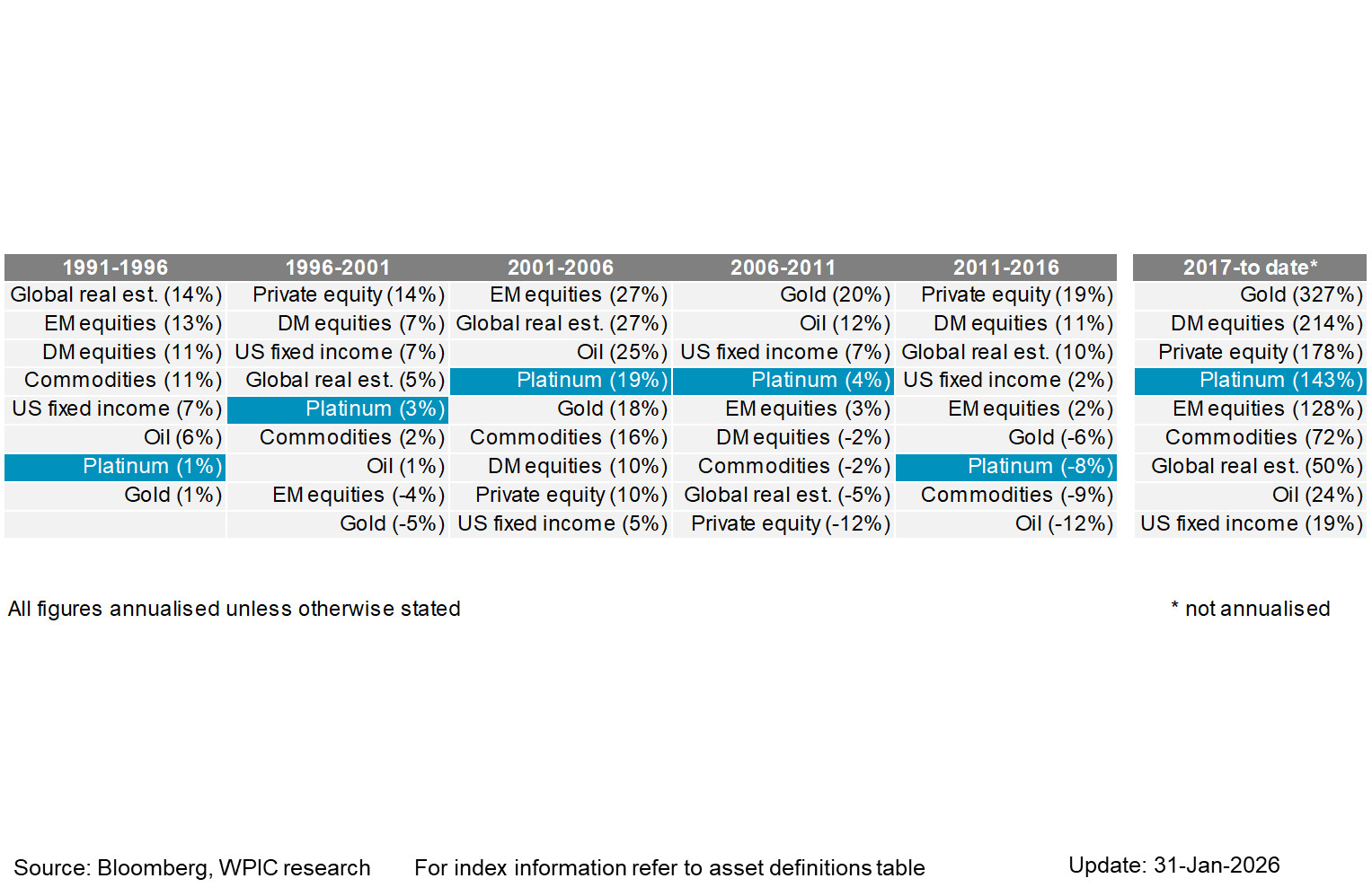 Platinum performance over short and long term periods