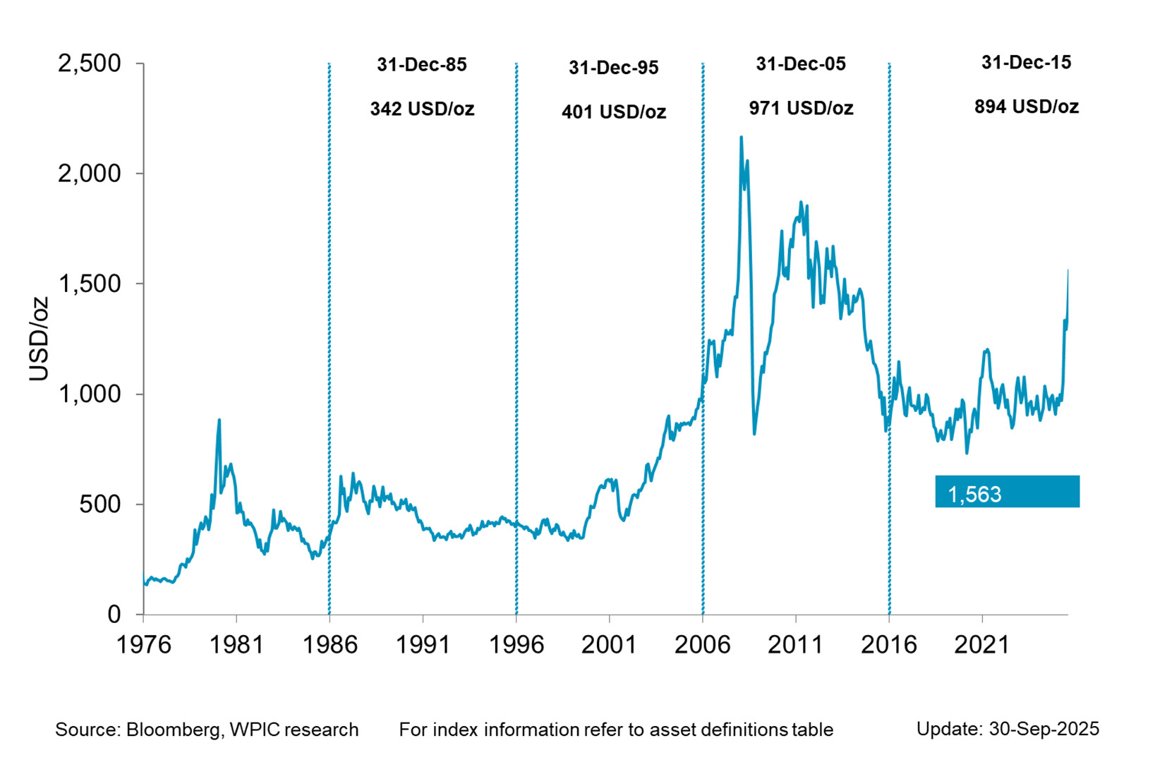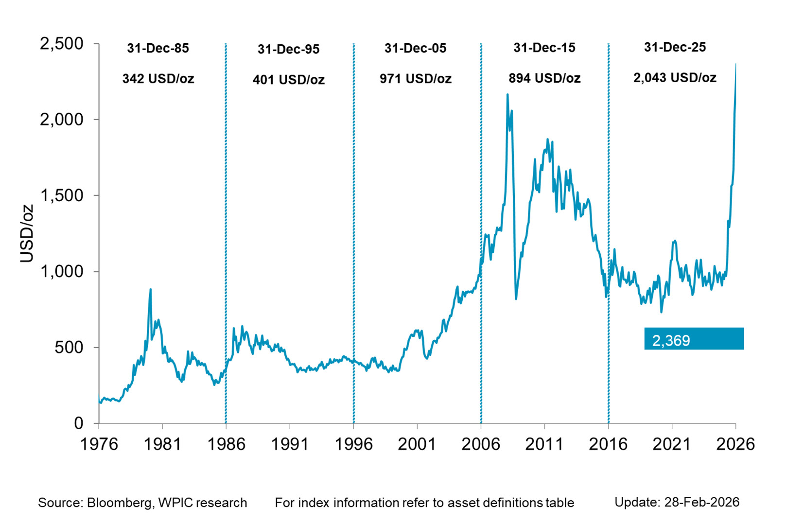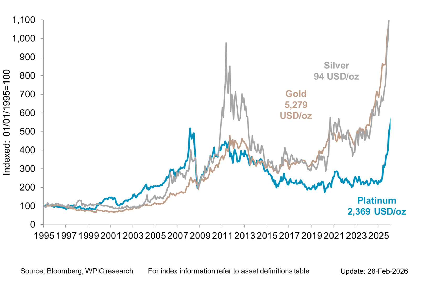 Precious metals price performance since 1995