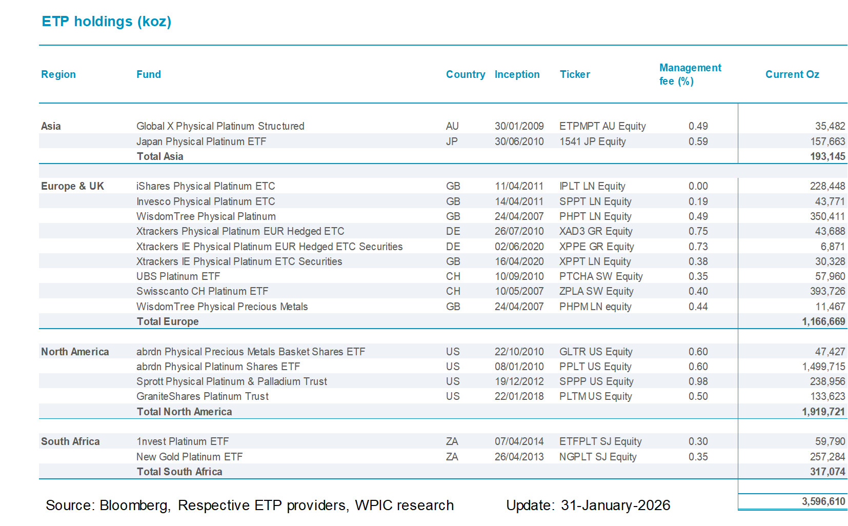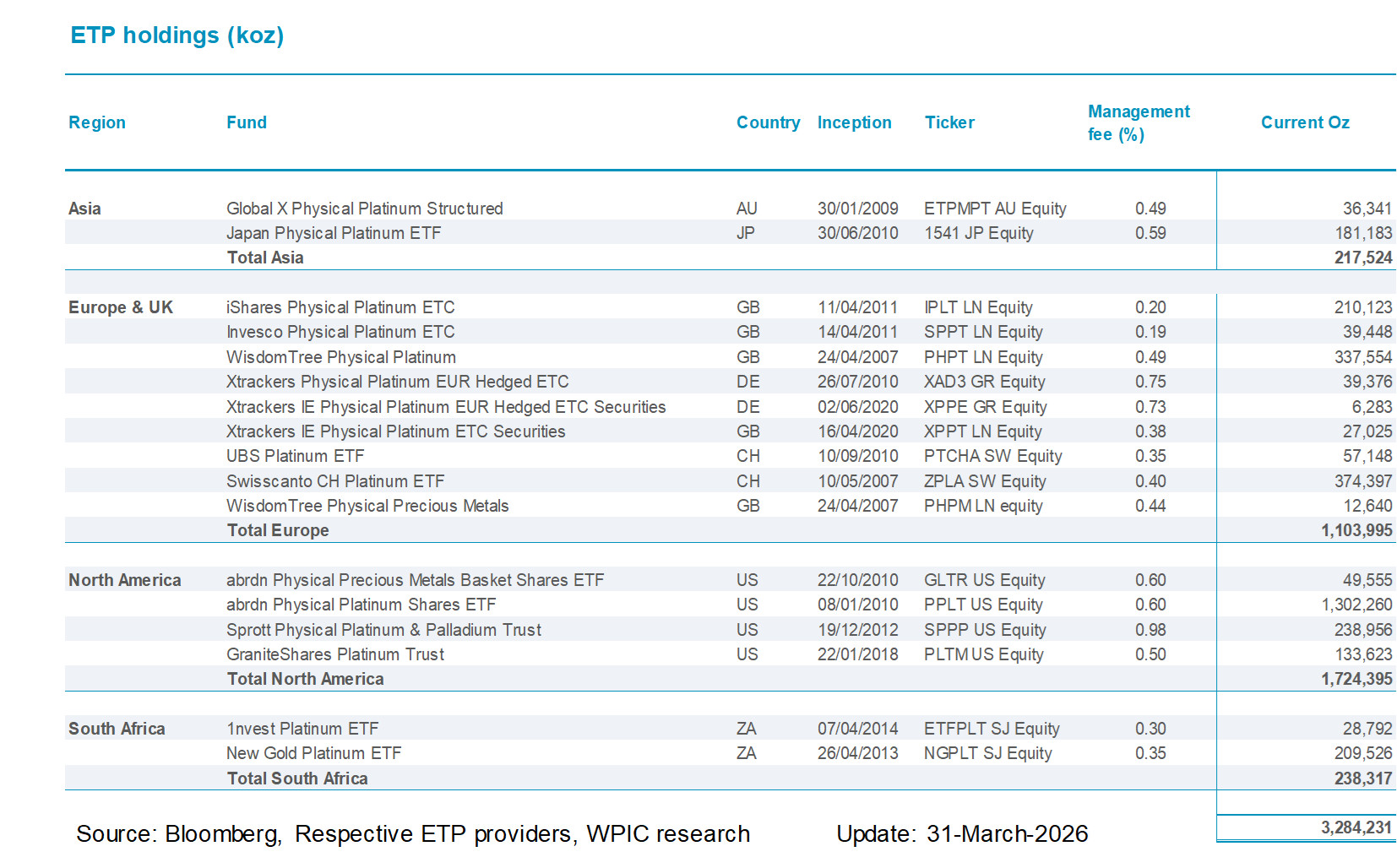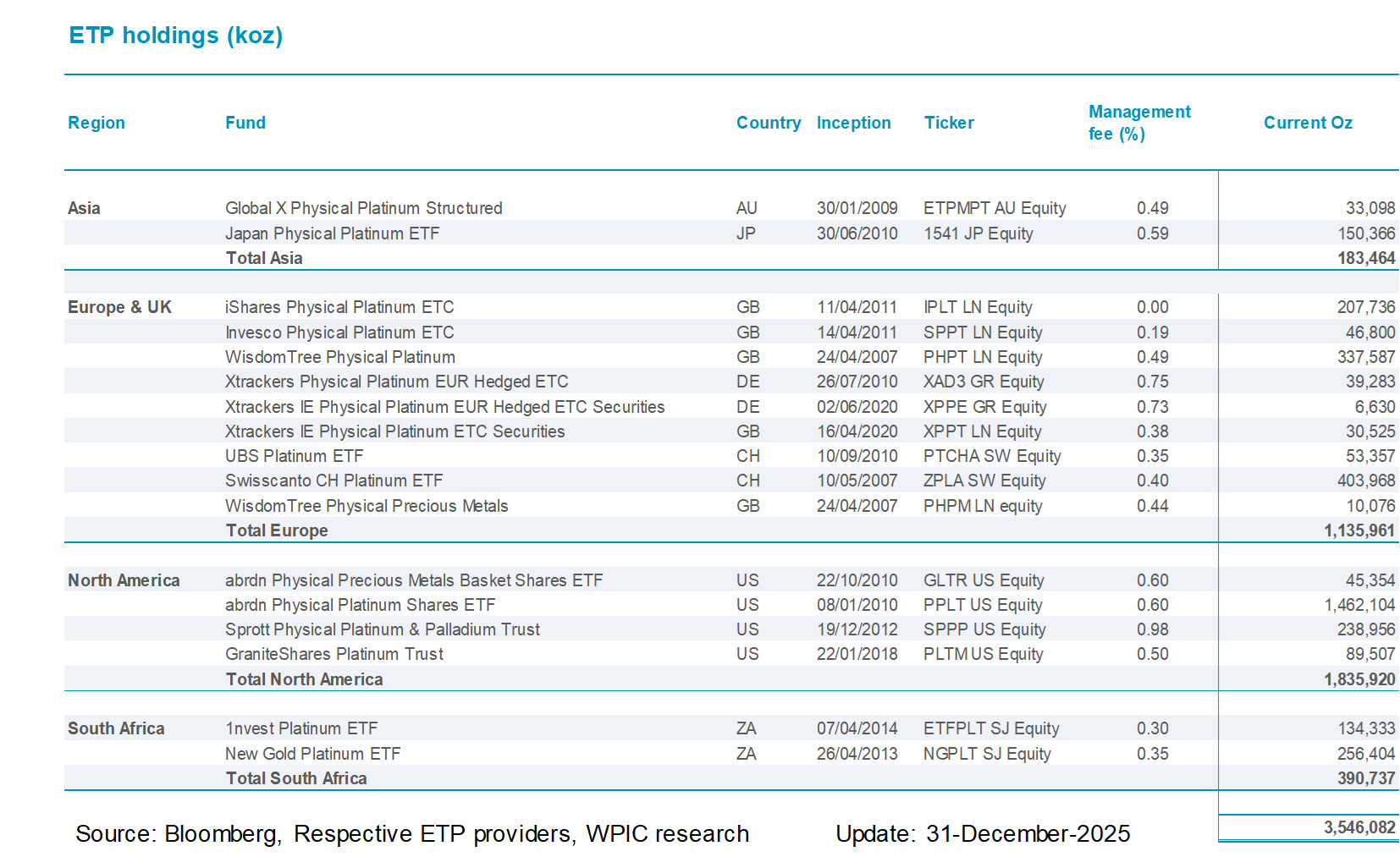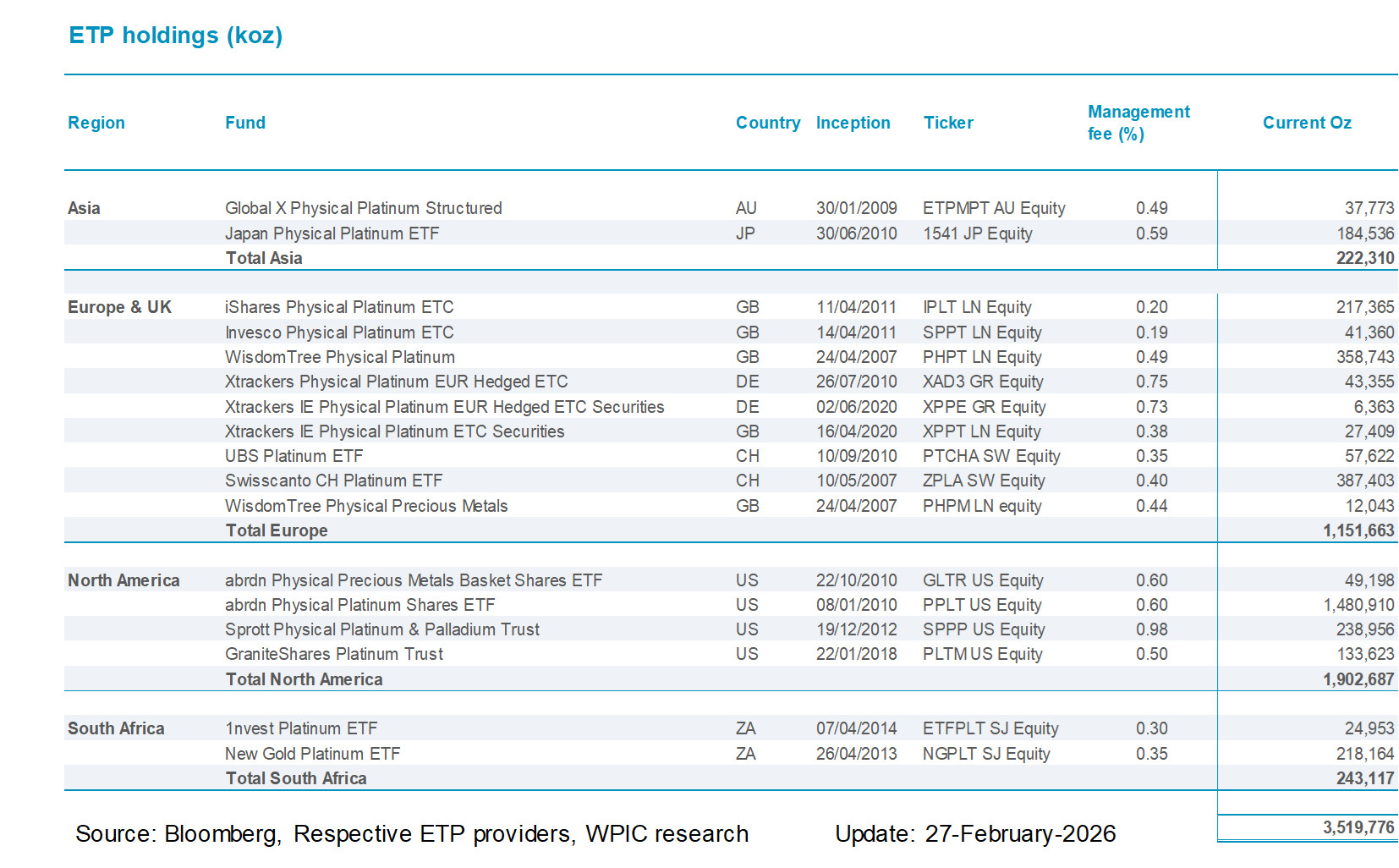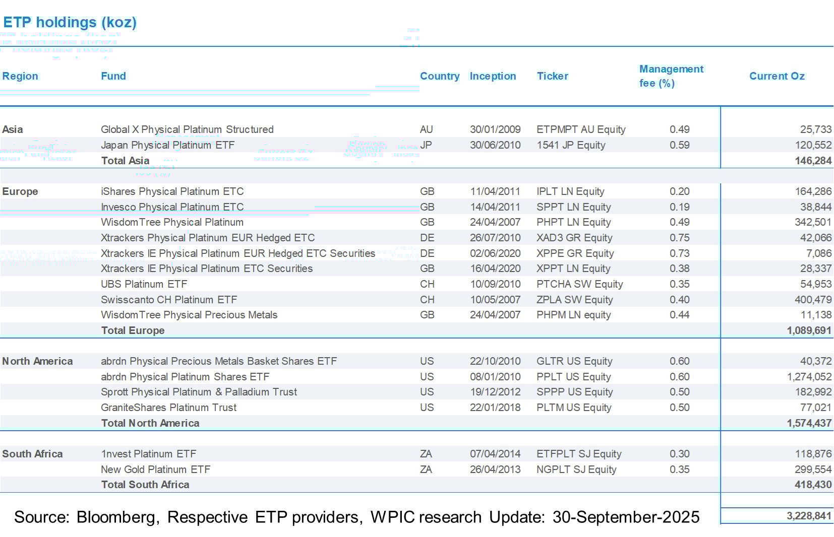 Platinum ETF holdings by fund