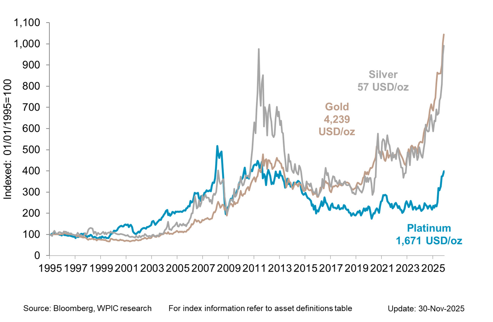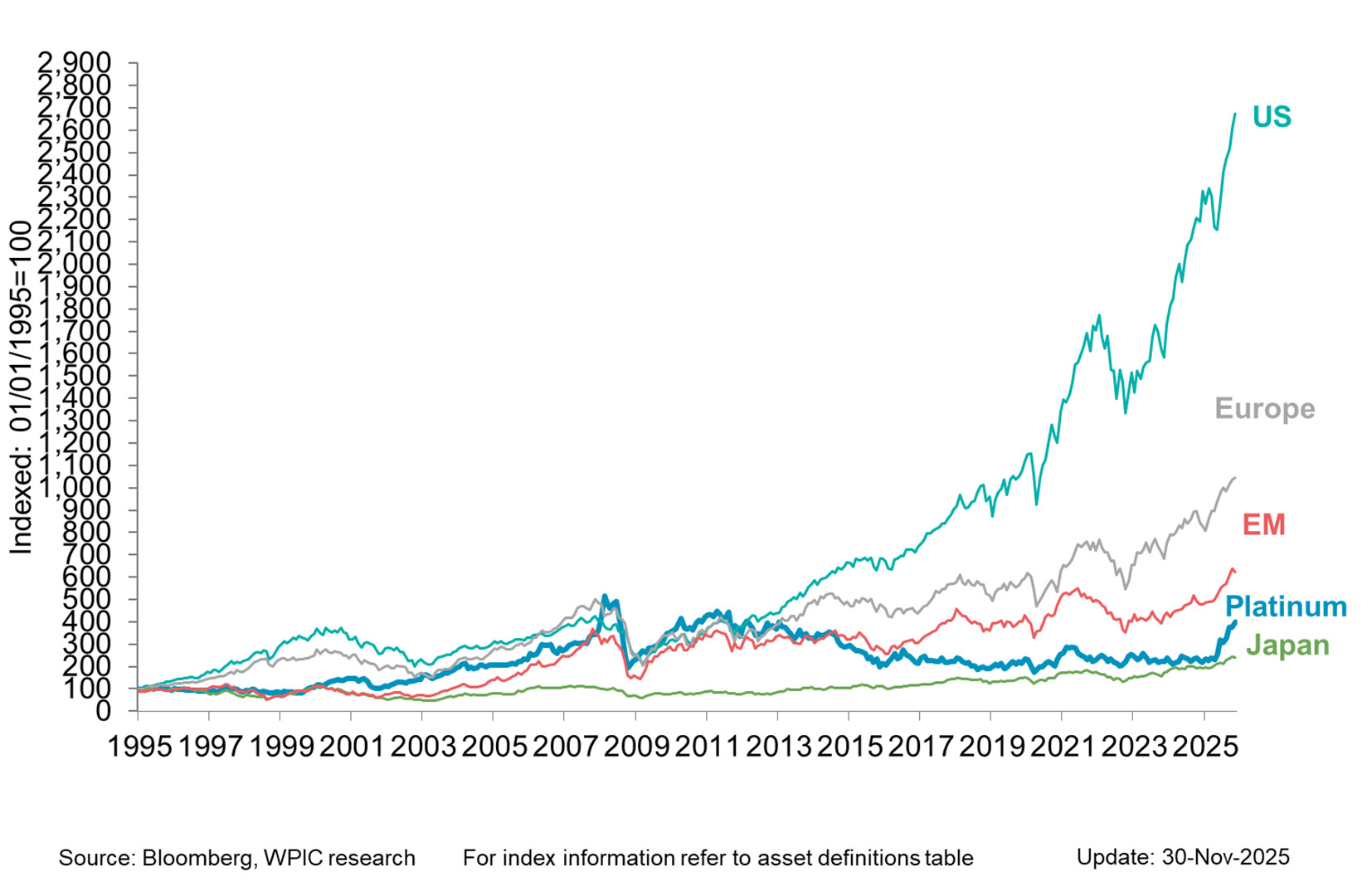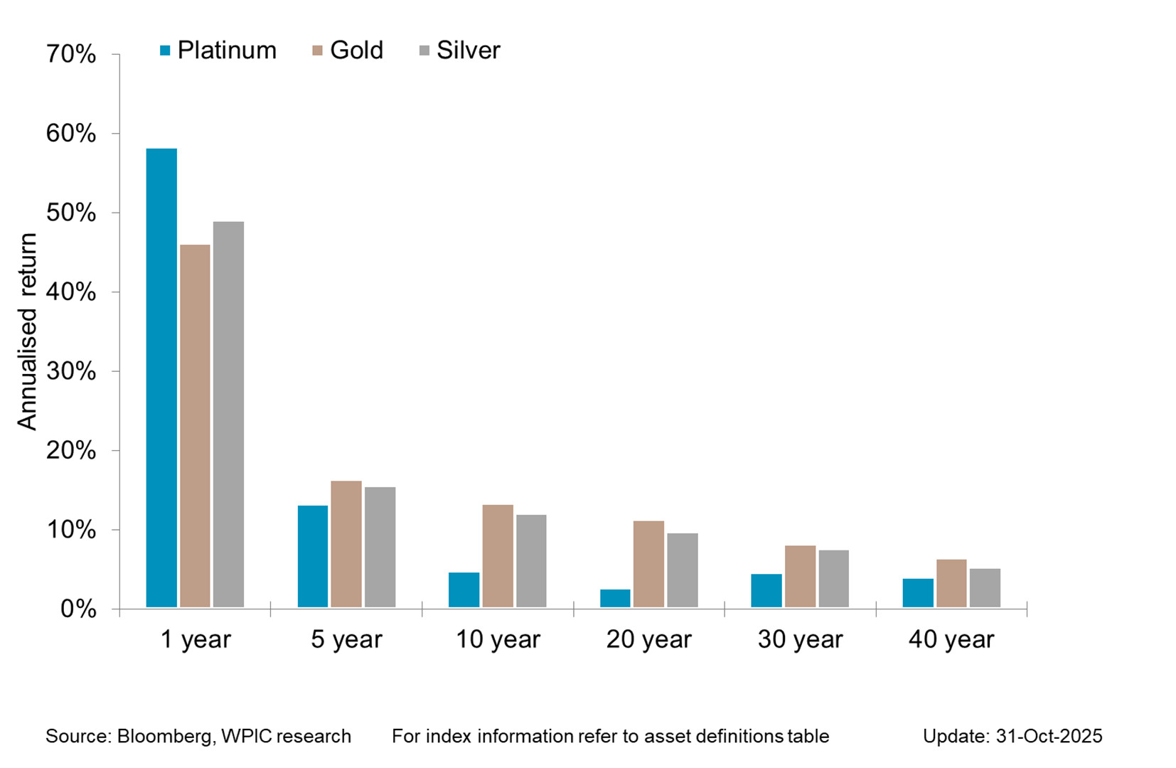 Platinum’s performance has been broadly in line with gold and silver, until recently