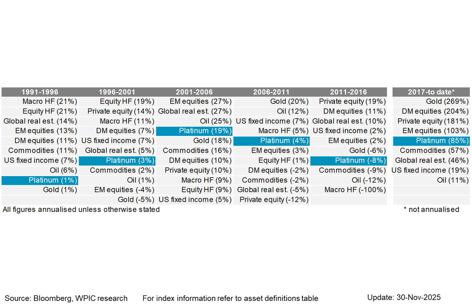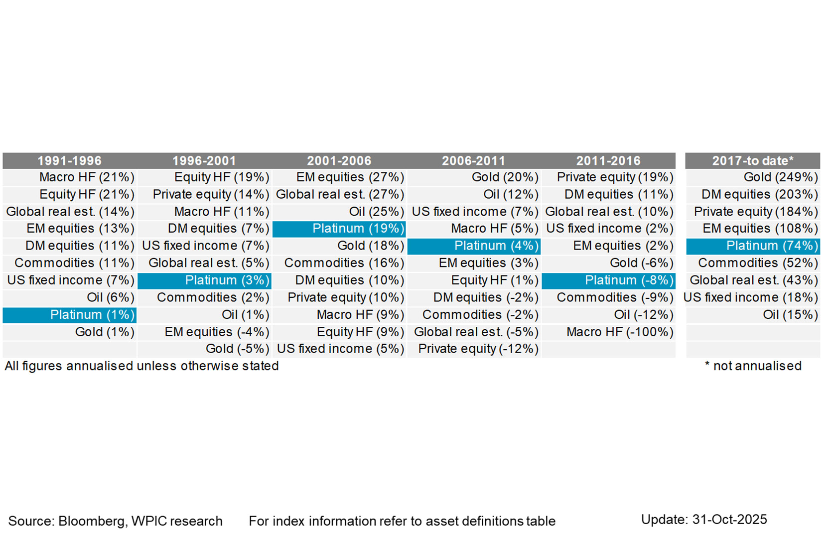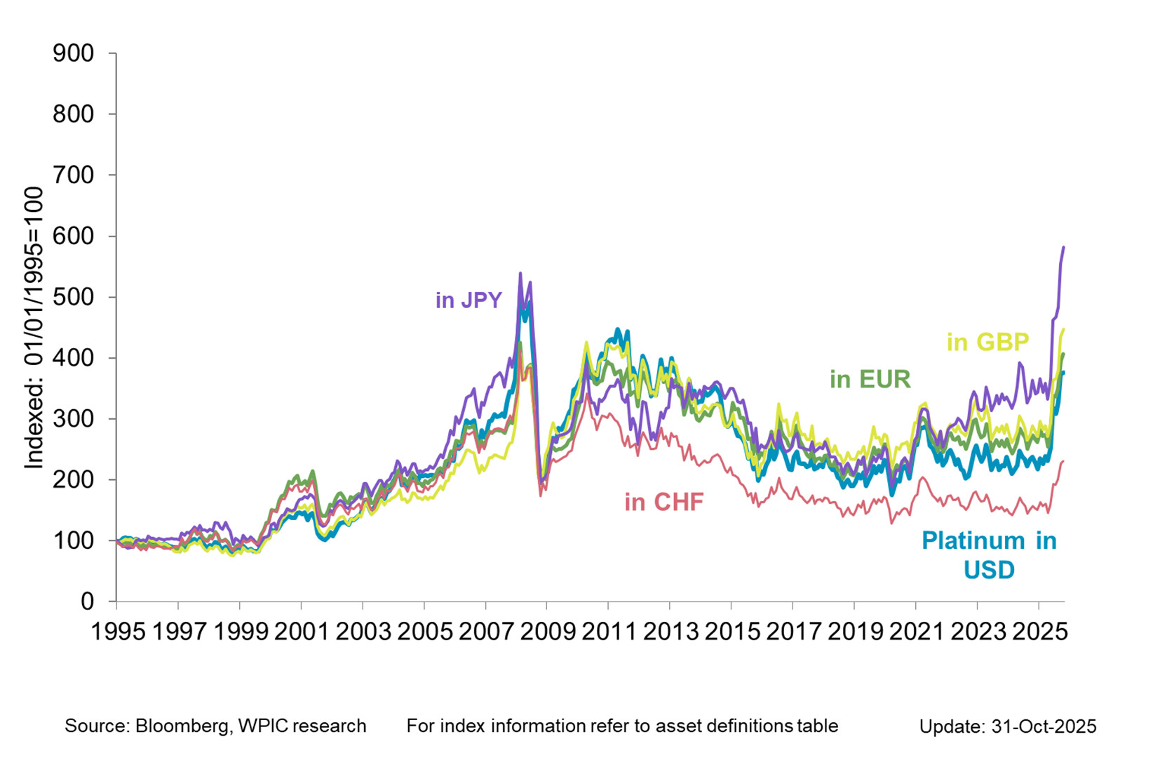 Platinum’s performance has been broadly in line with gold and silver, until recently