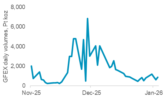 The third phase of platinum’s price rise occurred from December 2025 as precious metals sentiment became increasingly bullish. Optimism around precious metals has been underpinned by geopolitical risks, expectations of monetary policy easing, and growing concerns surrounding fiscal policy amongst large economies. Platinum was further buoyed by the launch of futures and options contracts on Guangzhou Futures Exchange.