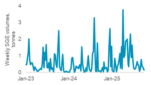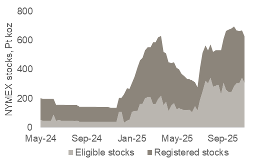 Physically settled platinum and palladium futures contracts and futures options will commence trading on the Guangzhou Futures Exchange (GFEX) on 27 November 2025. GFEX will offer domestic participants an increased ability to hedge price risk as well as offering financial participants an alternative mechanism to gain exposure to platinum and palladium. These should support broader liquidity and improve global price discovery. Moreover, GFEX will publish daily exchange stock holdings which will add colour to China’s metal inventories.
