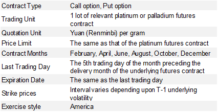 Figure 4: Key attributes of GFEX platinum and palladium futures options contracts