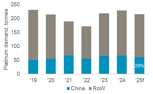 - Platinum supply remains challenged, both in terms of primary mining and secondary recycling supply