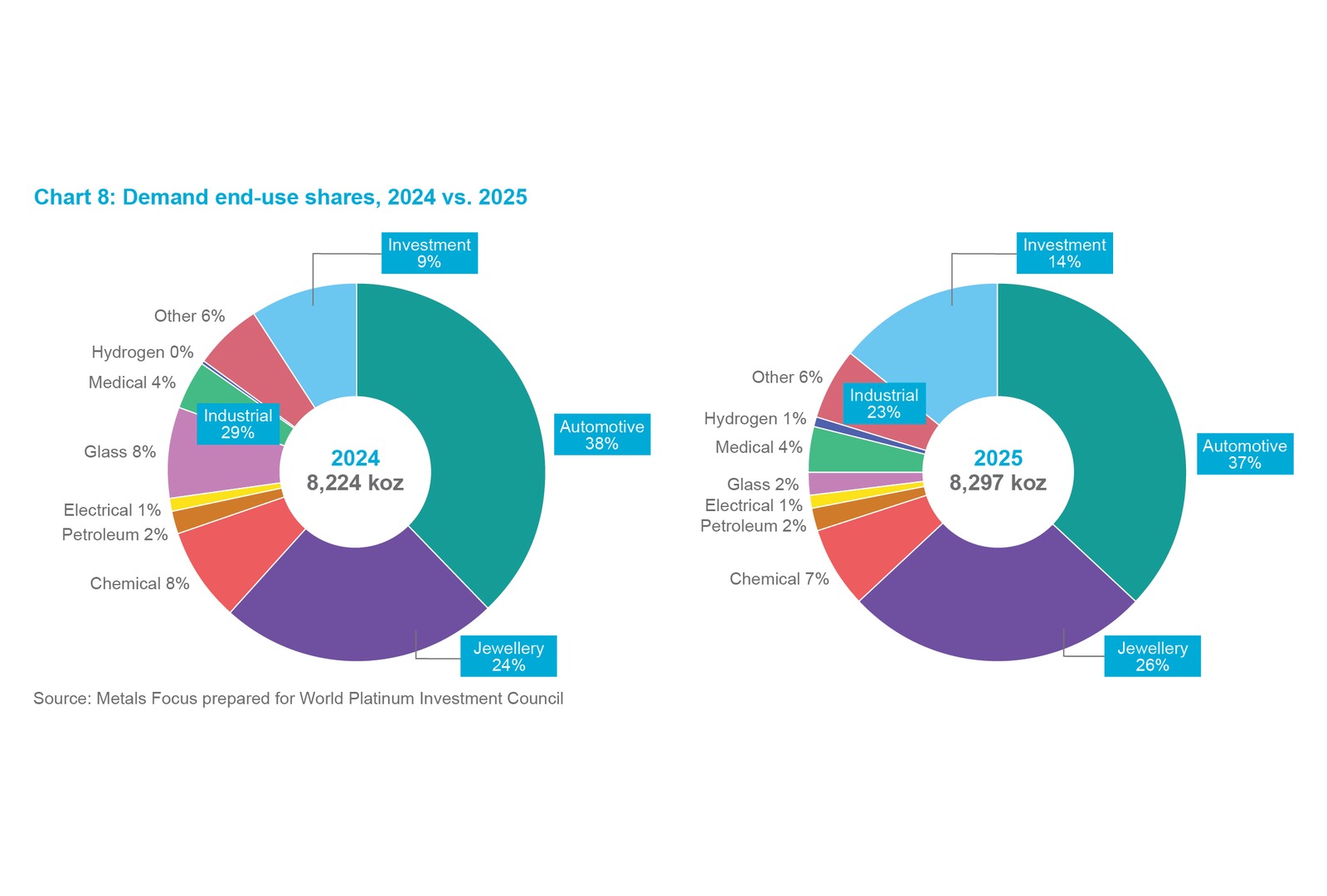 Chart 8: Demand end-use shares, 2024 vs. 2025.